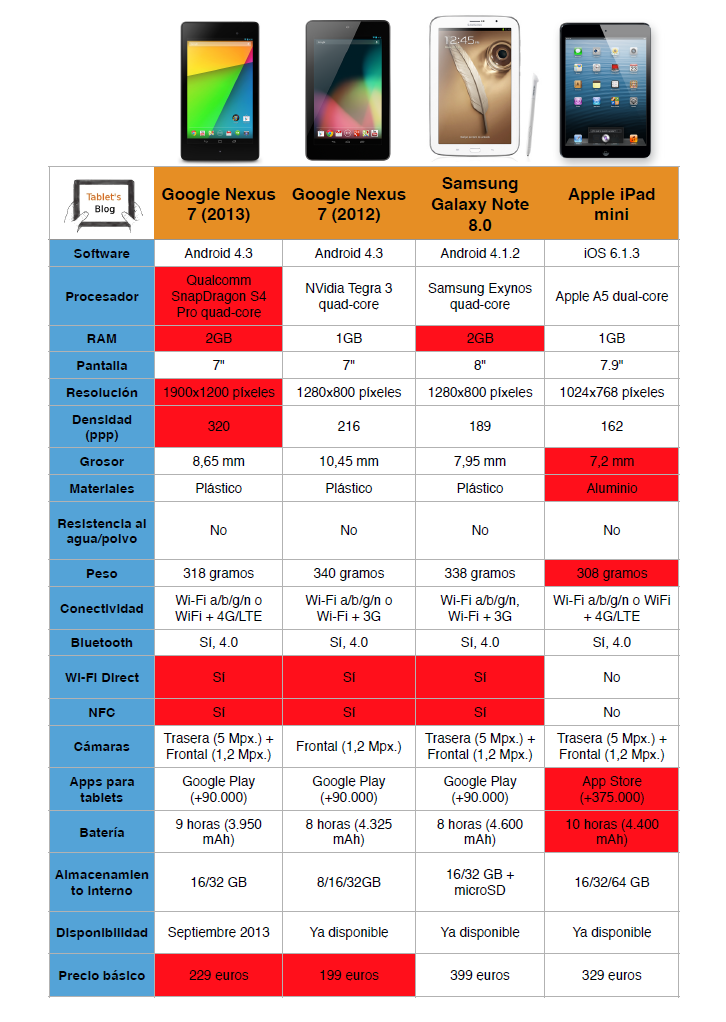 ¿Qué os parece?¿Es tanta la diferencia entre el nuevo Nexus 7 y sus competidores?¿Y con el modelo anterior? Podéis dejar vuestras opiniones en este mismo post o a través de nuestro Twitter: @TheTabletsBlog.
