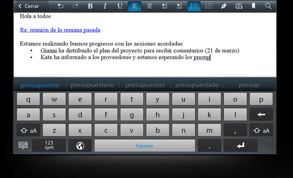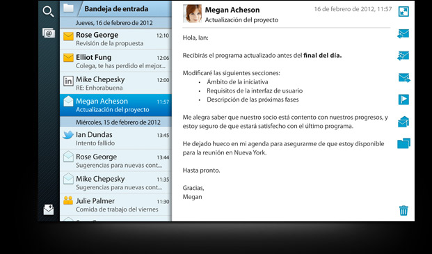 La novedad que más esperábamos para la tablet de RIM era el gestor de correo, por fin indepiendiente y propio de la tablet.